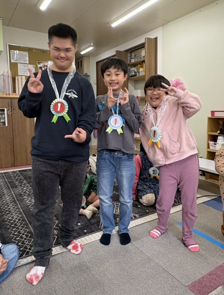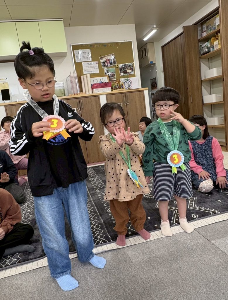 イベント 2026.4.6 卓球大会 こんにちは 育みです😊 今日は「卓球大会」! こどもたちは「大会」と聞くとテンションUP♪ メダルをかけてチーム戦です!✨️ 3位諦めずよく頑張りました! 2位おめでとう!おしかったー! 1位おめでとう!!やったね♡ 今回もちゃんとルールを守って遊べました😊✋